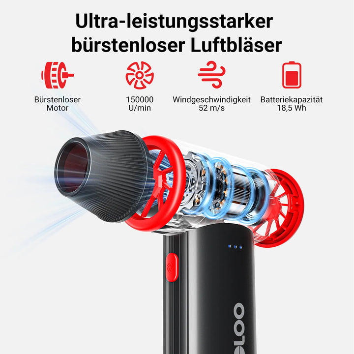 🌀 3 Windstufen – Der einstellbare Luftstrom eignet sich für empfindliche Elektronik, Autoinnenräume und Oberflächen im Haushalt und sorgt für eine sichere und effektive Staubentfernung.