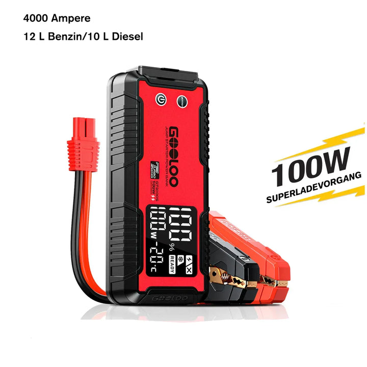 Das GOOLOO GT4000S Autostarter ist Ihr ultimativer Retter im Straßenverkehr. Es liefert unglaubliche 4000 A Spitzenstrom und gibt selbst den härtesten Fahrzeugen Starthilfe. Entwickelt für Leistung und Zuverlässigkeit, belebt es mühelos 12-Liter-Benzin- oder 10-Liter-Dieselmotoren – perfekt für Lkw, SUVs, Wohnmobile und schweres Gerät. Nie wieder auf Pannenhilfe warten oder nach Starthilfekabeln betteln!